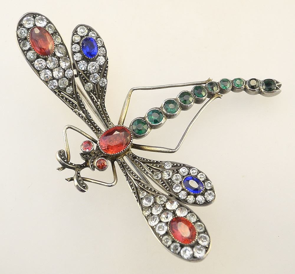 Russian 84 Zolotnik (Marked) & Paste Dragonfly Brooch, 3" Wide, 25.9 Grams