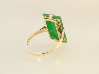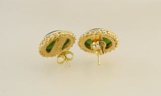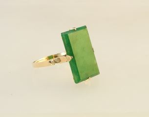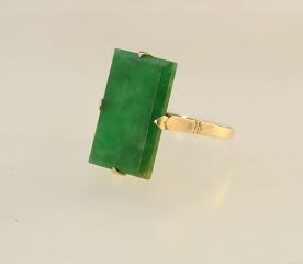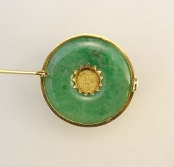 4 Chinese Gold & Jade Jewelry Items: 18K Brooch/ 14K Earrings/ 14K Ring Size 9 1/4, TW 16.8 Grams