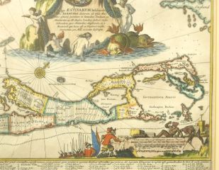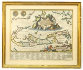 Ogilby Hand Coloured 17th Century Map of Bermuda, 11 1/2" x 14 1/4".