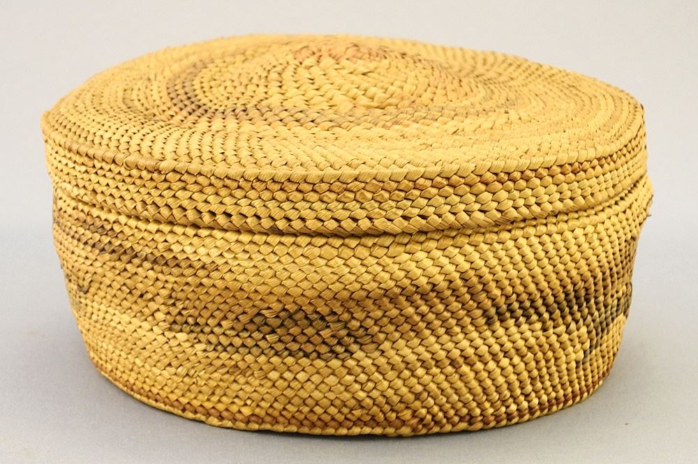Nuu-Chah-Nulth Covered Basket, 4 3/4" diameter, "Whaling".
