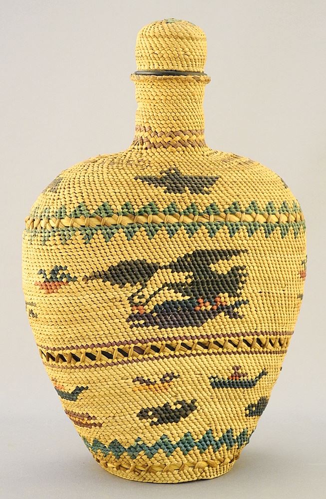 LOT 153 Nuu-Chah-Nulth Bark Covered Bottle and Stopper, 9 1/4"H, "Whaling". Estimate: $200 - $400 Sold For: $550 Auction Date: Tuesday, August 29 2023 at 4:00 PM