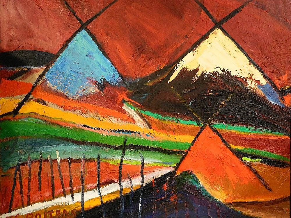 LOT 110 Oil on Canvas signed (Jane) Ash Poitras, 29 7/8 x 35 3/4", "Teepees" Double Sided. Estimate: $2,000 - $3,000 Sold For: $1,900 Auction Date: Tuesday, August 29 2023 at 4:00 PM