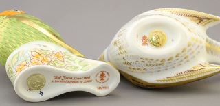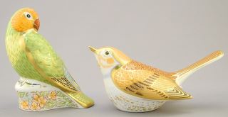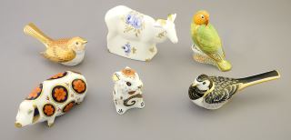 6 Royal Crown Derby Paper Weights: Song Thrush, Sun Parakeet, Terrapin, Tortoise, etc.