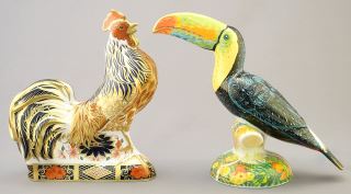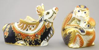 6 Royal Crown Derby Paper Weights: Imari Rooster, Reindeer, Rio Toucan, Monkey & Baby, etc.