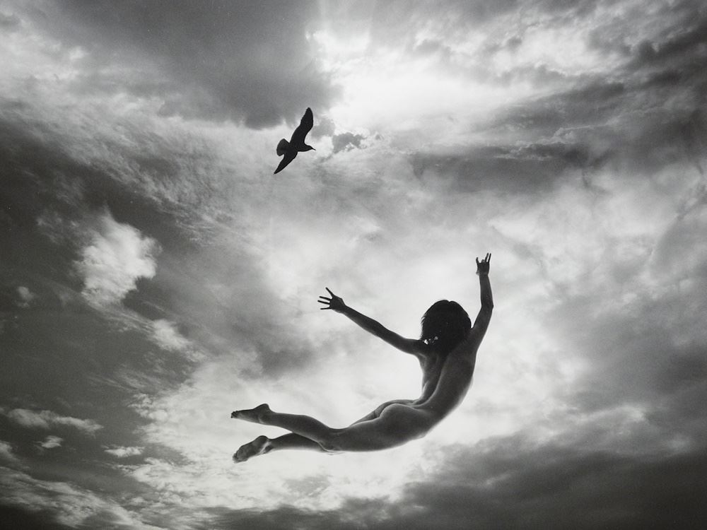Gelatin Silver Print Signed JNU 80 (Jerry Uelsman), 15" x 18 1/2", "Untitled - Girl/Gull".