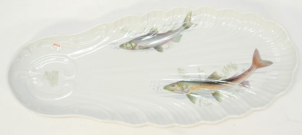 LOT 70 Porcelain de Sologne Fish Service, 14 pieces, Platter 21 7/8"W. Estimate: $150 - $300 Sold For: $180 Auction Date: Tuesday, August 29 2023 at 4:00 PM