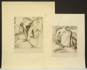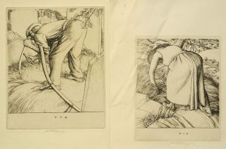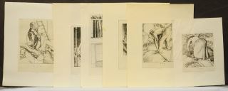 6 Etchings signed and Monogrammed Robert (Sargent) Austin, Largest Plate 7 3/8 x 6".
