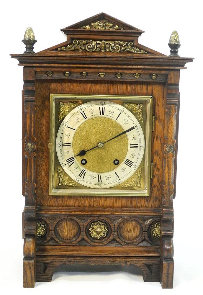 LOT 85 Aitchison Edinburgh Gothic Oak Mantle Clock, 16 7/8 x 10 x 7 3/4". Estimate: $200 - $400 Sold For: $325 Auction Date: Tuesday, October 24 2023 at 4:00 PM