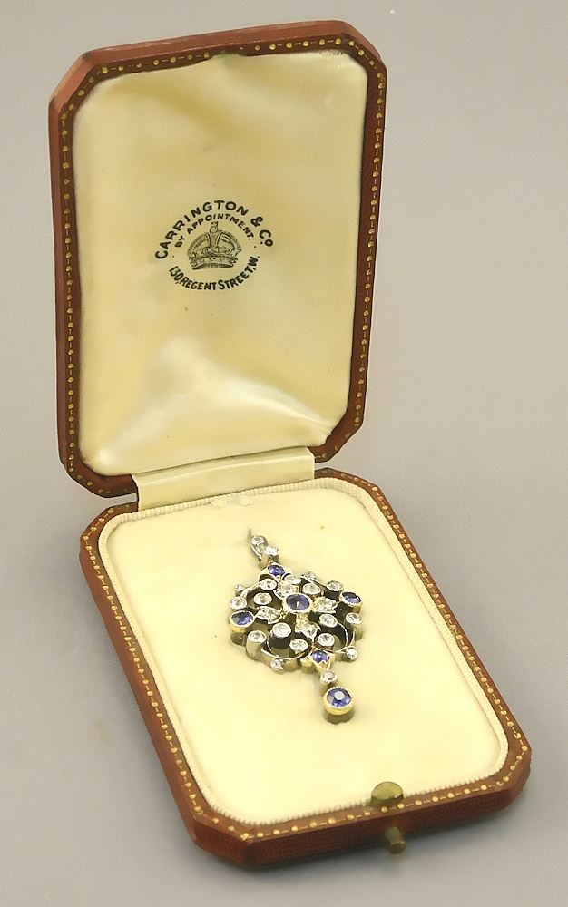 Antique Gold Plated Diamond & Natural Sapphire Pendant, 8.45 Grams with Original Box.