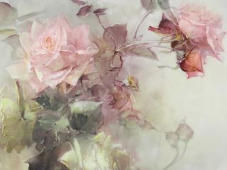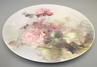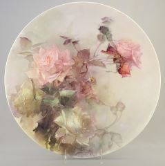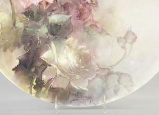Porcelain Charger signed Franz A. Bischoff 1904, 16" Diam., "Rose Study".