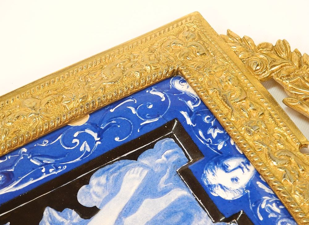 Pair of L.M.& C. Montereau Plaques in Cast Brass Frames, Lacking Sconce -19 1/4" x 8 1/8".