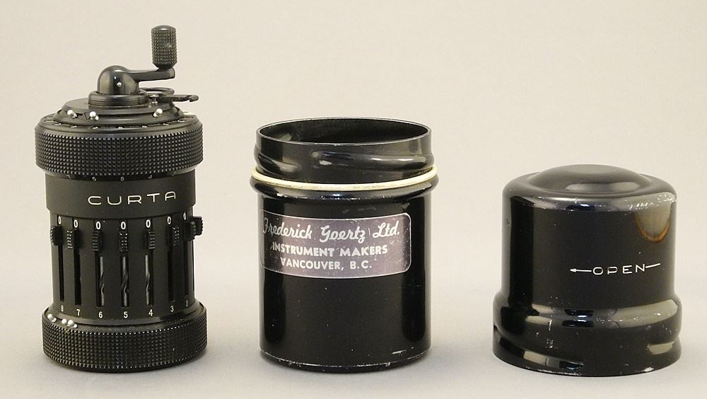 Curta Type One Calculator with Case and Manuals.