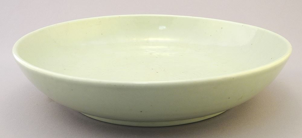 Chinese Carved Celadon Low Bowl, Yong Zheng Mark, 2 1/8 x 10 5/8" Diameter.