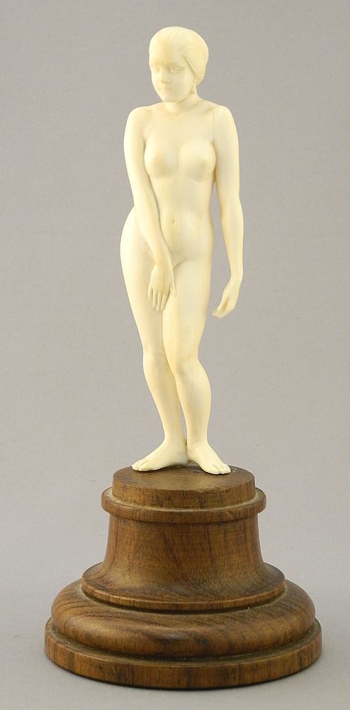 LOT 50 Calcutta Figural Carving on Stand, T. Asooma & Co. New Market, 7 1/4"H, NO EXPORT. Estimate: $150 - $200 Sold For: $150 Auction Date: Tuesday, October 24 2023 at 4:00 PM