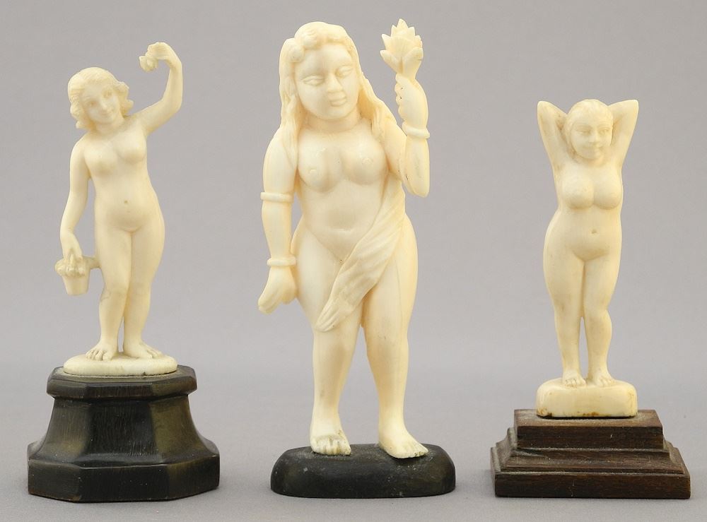 LOT 99 3 Calcutta Figural Carvings on Stands, 3 1/8 - 3 5/8"H, NO EXPORT. Estimate: $150 - $200 Auction Date: Tuesday, October 24 2023 at 4:00 PM