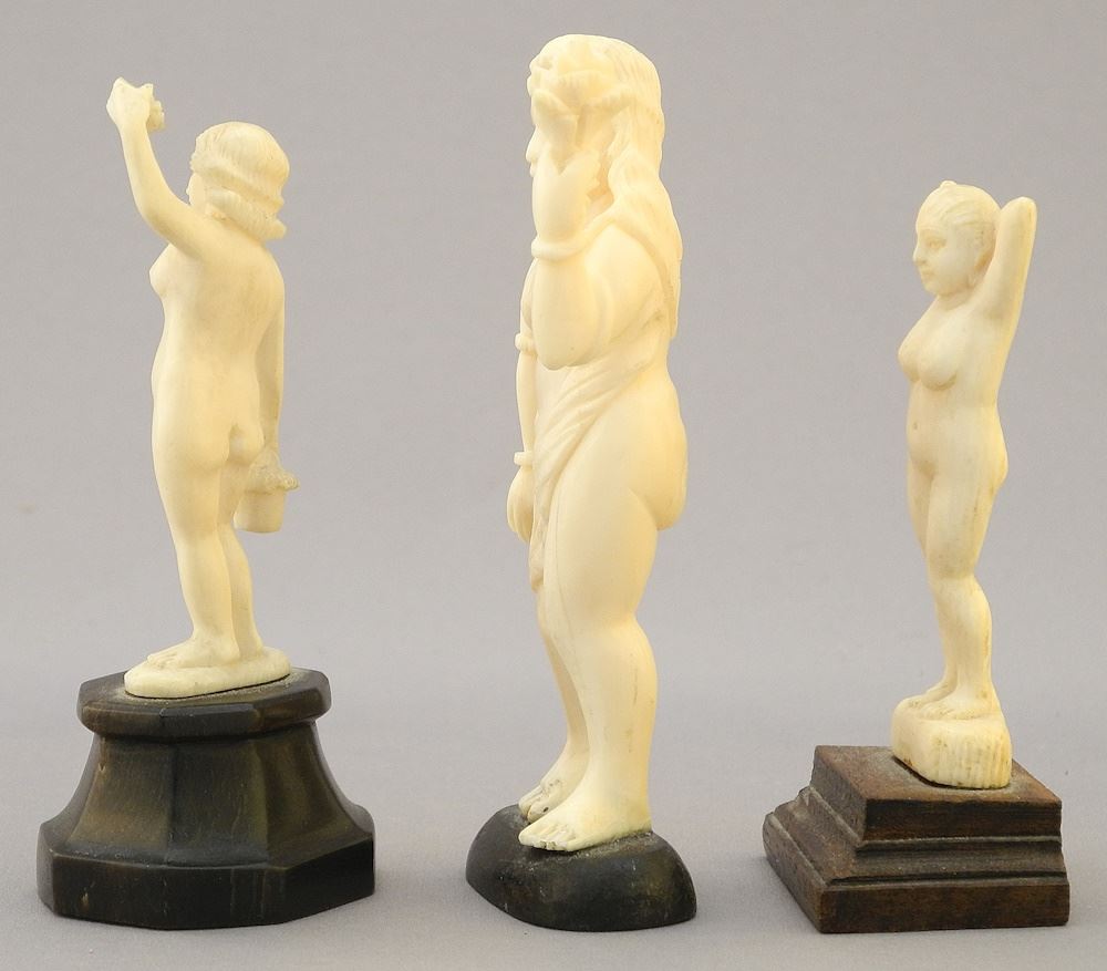 3 Calcutta Figural Carvings on Stands, 3 1/8 - 3 5/8"H, NO EXPORT.