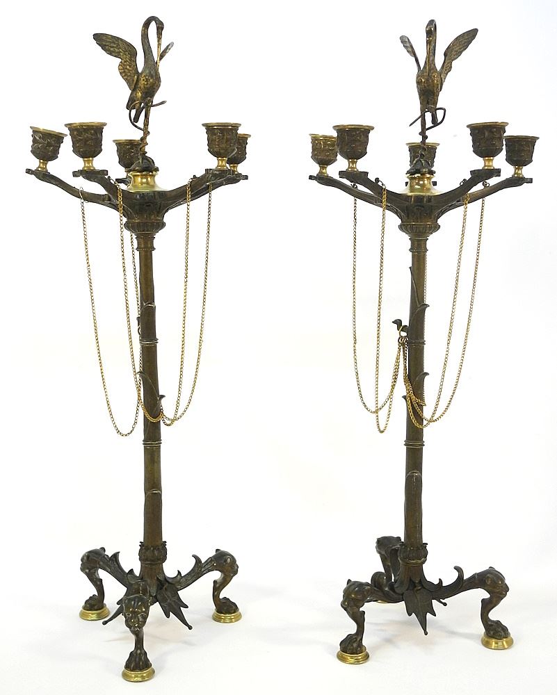LOT 113 Pair of 19th Century French Bronze Crane Candleabra, 24 1/2" High, Estimate: $1,000 - $1,500 Sold For: $800 Auction Date: Tuesday, October 24 2023 at 4:00 PM