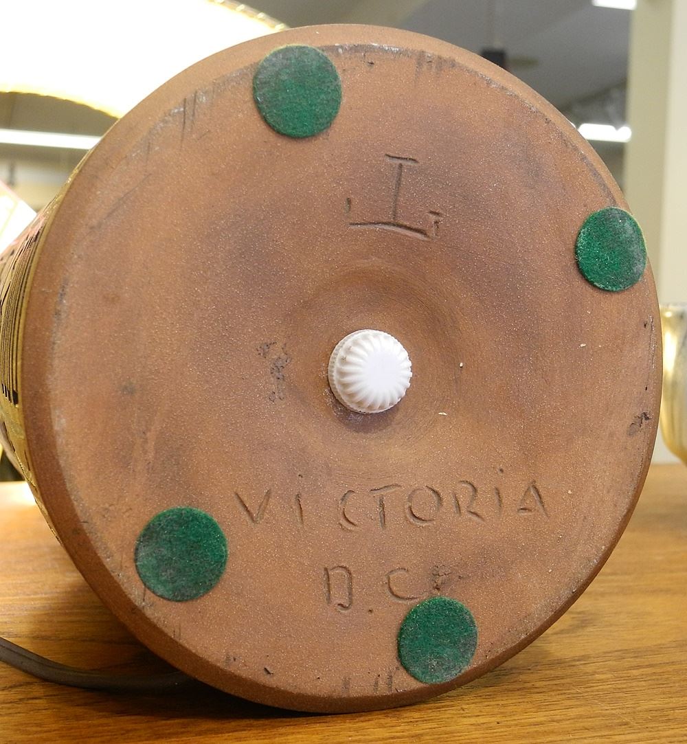 Stoneware Lamp Monogrammed Jan Grove Pottery Section 16 1/8"H.