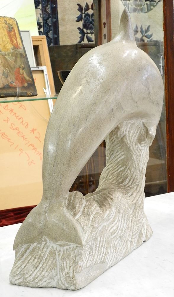 Marble Sculpture signed Derek Green, 19 x 22 x 5 1/2", "Leaping Dolphin".