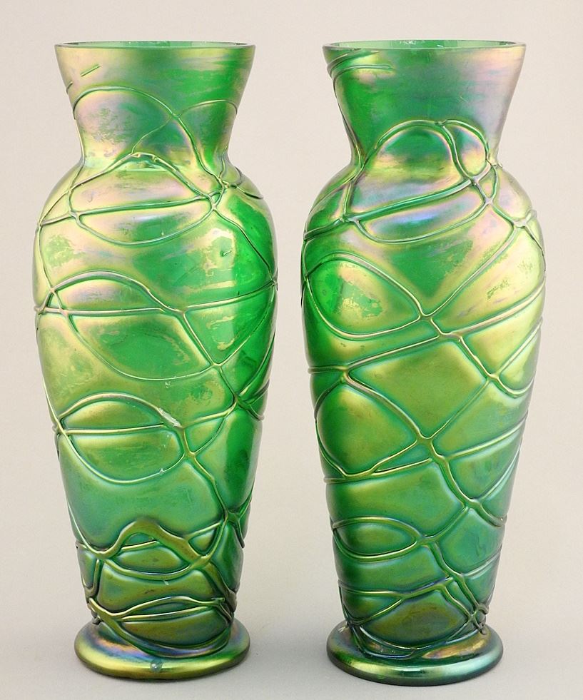 LOT 26 Pair of Loetz Style Glass Vases, 9 5/8"H. Estimate: $200 - $300 Sold For: $200 Auction Date: Tuesday, December 12 2023 at 4:00 PM