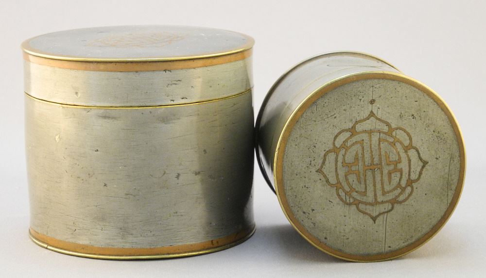 4 Chinese Pewter Tea Containers, 2 5/8" - 5 1/8".