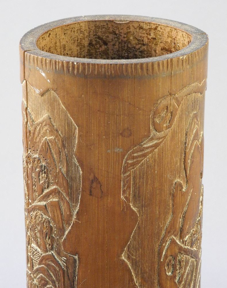 19th Century Chinese Bamboo Brush Pot, 5 1/2" - splits noted.