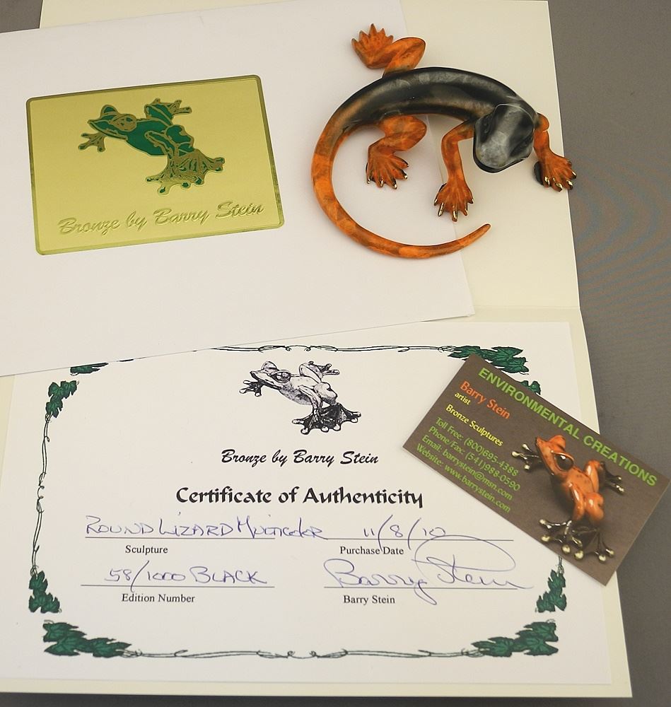 LOT 190 Bronze signed Barry Stein, 4 3/4", "Round Lizard Multicolor", #58/1000, with Certificate. Estimate: $100 - $200 Sold For: $70 Auction Date: Tuesday, December 12 2023 at 4:00 PM
