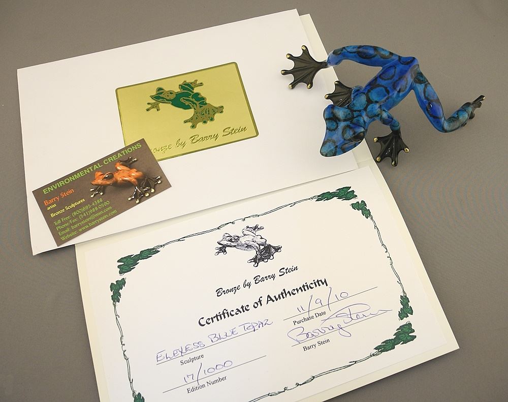 Bronze signed Barry Stein, 6 1/2", "Elexess Blue Topaz Frog", #17/1000 with Certificate.