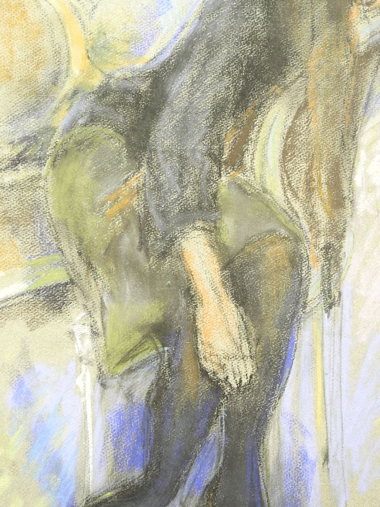 Pastels on Paper signed (Joseph) Plaskett'64, 25 5/8 x 19 3/4", "Paula - Grief"