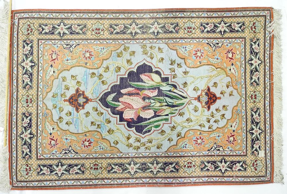 LOT 53 Silk Prayer Mat, Floral Design, Approx. 4'3" x 2'8". Estimate: $250 - $400 Sold For: $275 Auction Date: Tuesday, December 12 2023 at 4:00 PM