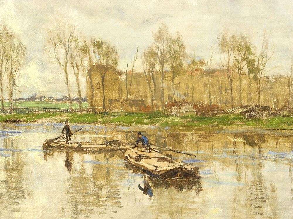 Oil on Canvas signed J.H (Johann Hendrik) van Mastenbroek, 15 1/4" x 23 1/4", "Canal Scene".