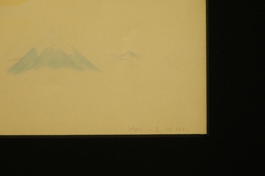 LOT 108 Coloured Pencil Attributed to Ernst Schwitters, 8 1/2" x 12", "Surreal Landscape". Estimate: $500 - $1,000 Auction Date: Tuesday, December 12 2023 at 4:00 PM