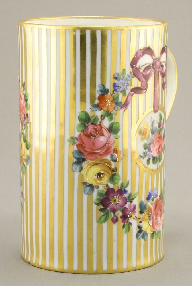 Hand Decorated Porcelain Mug, Script "D" to Base, 4 3/8"H (foot trim disruption noted).