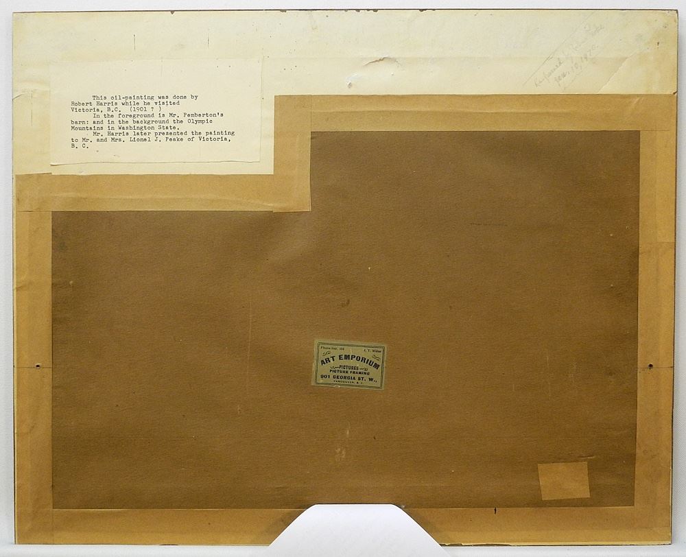 Oil on Board signed (Robert) Harris, 11 5/8" x 15 1/4", "Mr. Pemberton's Barn".