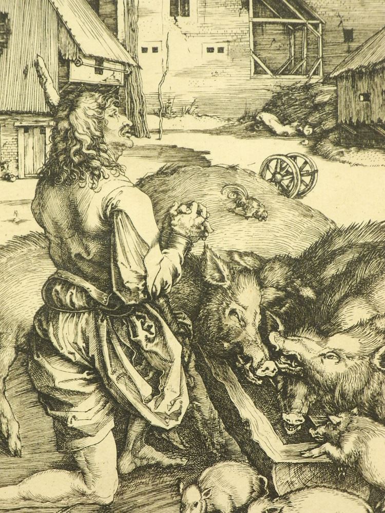 LOT 44 Engraving after Albrecht Durer, 9 3/4 x 7 1/2", "The Prodigal Son". Estimate: $200 - $400 Sold For: $400 Auction Date: Tuesday, December 12 2023 at 4:00 PM