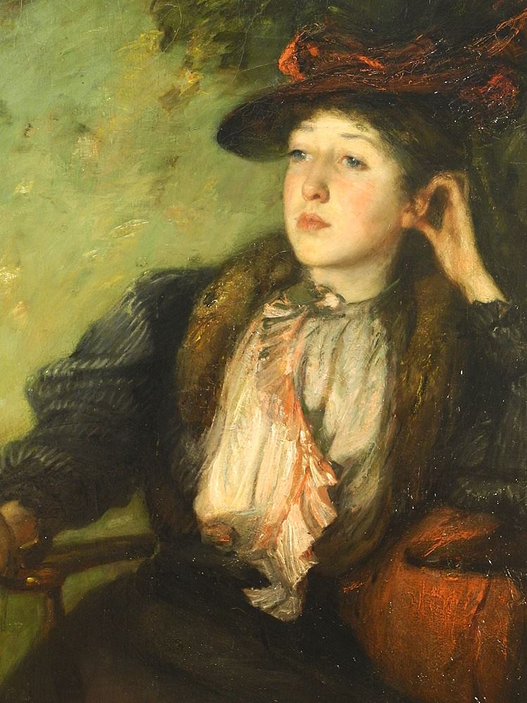 Oil on Canvas Attributed to James Campbell Noble R.S.A., 37 3/8 x 30 1/4", "Artists Daughter