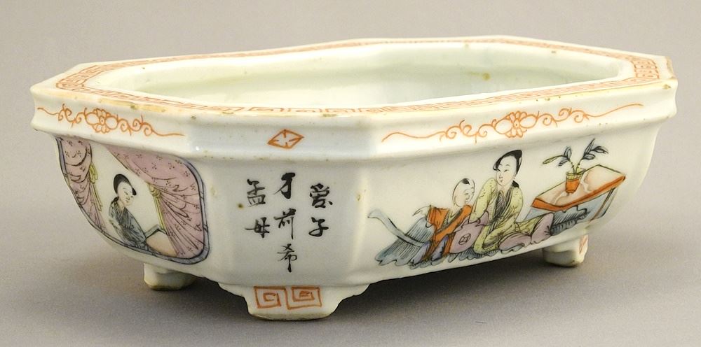 LOT 173 Chinese Famille Rose Porcelain Planter, Tongzhi Mark, 2 1/8 x 6 3/8 x 4 1/2". Estimate: $100 - $200 Sold For: $100 Auction Date: Tuesday, December 12 2023 at 4:00 PM