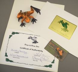 LOT 183 Bronze signed Barry Stein, 4 3/4", "Bumpy Candy Frog", #9/1000 with Certificate. Estimate: $100 - $200 Sold For: $90 Auction Date: Tuesday, December 12 2023 at 4:00 PM