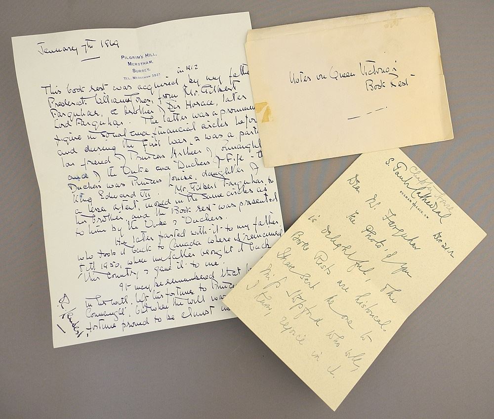 LOT 60 19th C. Porcelain & Brass Ebonised Wood Bookstand with Queen Victoria Provenance, 9 1/8". Estimate: $500 - $1,000 Sold For: $500 Auction Date: Tuesday, December 12 2023 at 4:00 PM