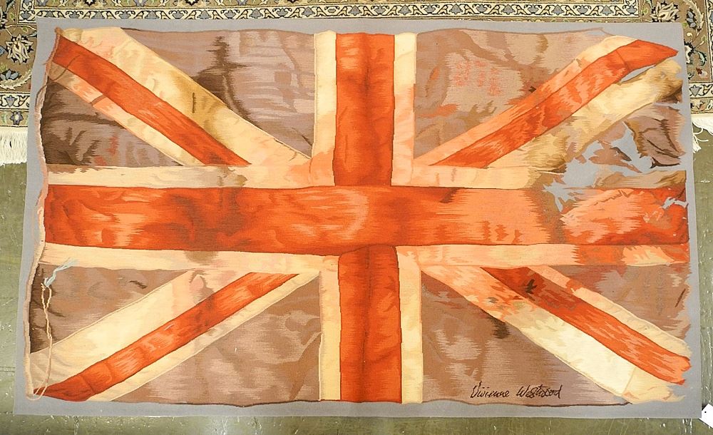 LOT 139 Vivienne Westwood for the Rug Company VW Flag Mini & VW Flag Cushion with Bags, 3 x 5'. Estimate: $200 - $400 Sold For: $1,200 Auction Date: Tuesday, December 12 2023 at 4:00 PM