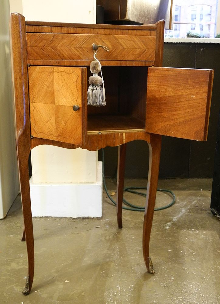 LOT 41 French Parquetry Cabinet Side Table, 29"H (minor veneer loss noted). Estimate: $100 - $200 Sold For: $110 Auction Date: Tuesday, December 12 2023 at 4:00 PM