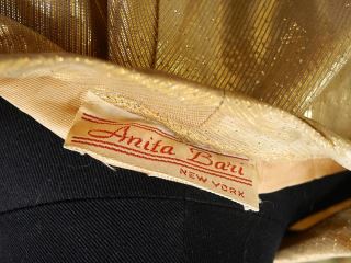1950's Anita Bari New York 3pc Gold Lame Outfit, Small (7/9).