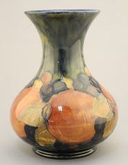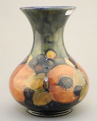 LOT 3 Moorcroft Pomegranate Vase, 7 5/8"H, (tiny glaze loss to rim noted). Estimate: $300 - $400 Sold For: $350 Auction Date: Tuesday, December 12 2023 at 4:00 PM