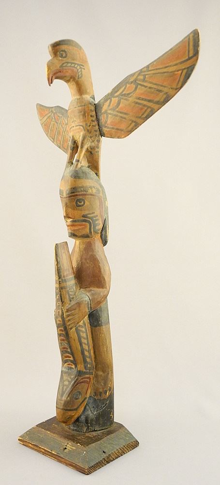 Kwagiulth Model Totem Pole signed Charlie James - Yakuglas, 15 3/8 x 9 1/2 x 3 1/2".