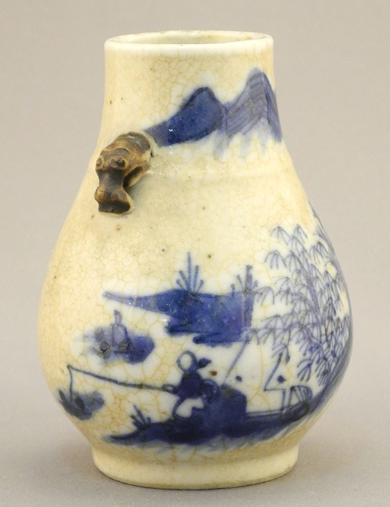 Chinese Blue & White Crackleware Vase, 3 3/4"H.