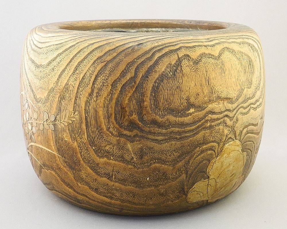 LOT 86 Japanese Lacquered Elm Hibachi, 7 5/8" x 11 1/2". Estimate: $150 - $300 Sold For: $150 Auction Date: Tuesday, February 27 2024 at 4:00 PM