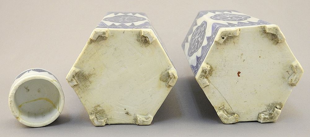 LOT 71 Pair of Hexagonal Chinese Blue & White Bottles with One Cup (as found). Estimate: $200 - $300 Sold For: $275 Auction Date: Tuesday, February 27 2024 at 4:00 PM