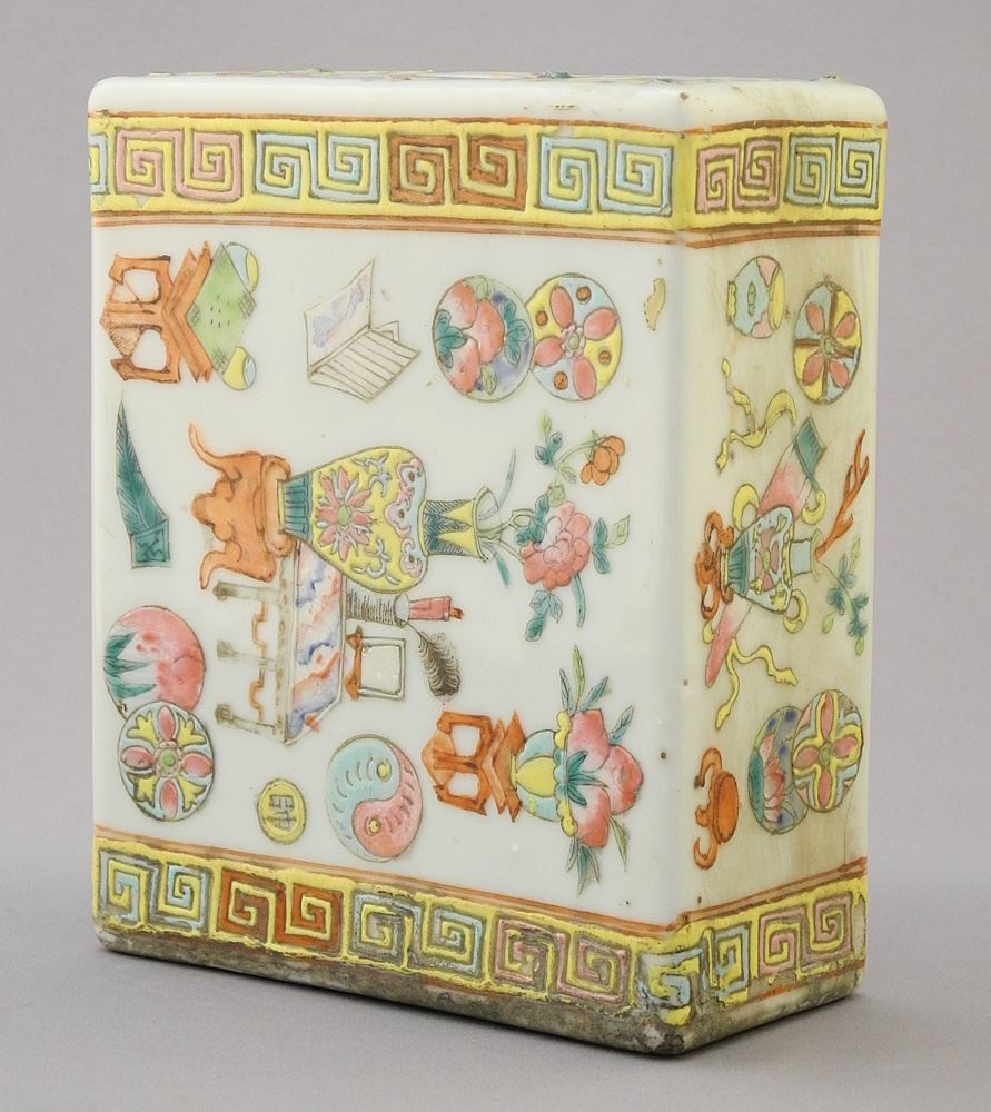LOT 27 Chinese Famille Rose Porcelain Pillow, 5 3/4" x 4 3/4" x 2 1/4". Estimate: $200 - $300 Auction Date: Tuesday, February 27 2024 at 4:00 PM