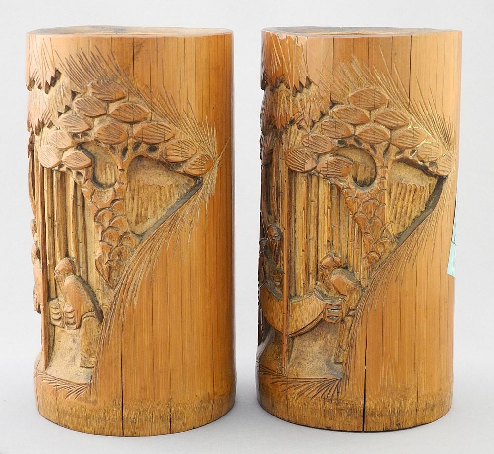 Pair of Chinese Bamboo Brush Pots, 7 1/4"H.