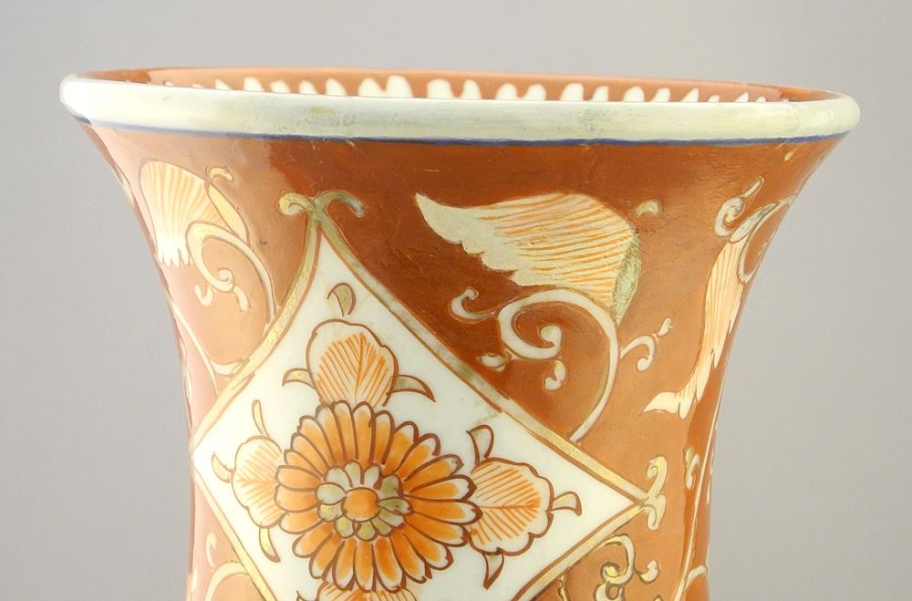 Pair of Japanese Imari Porcelain Baluster Vases (one rim restored).